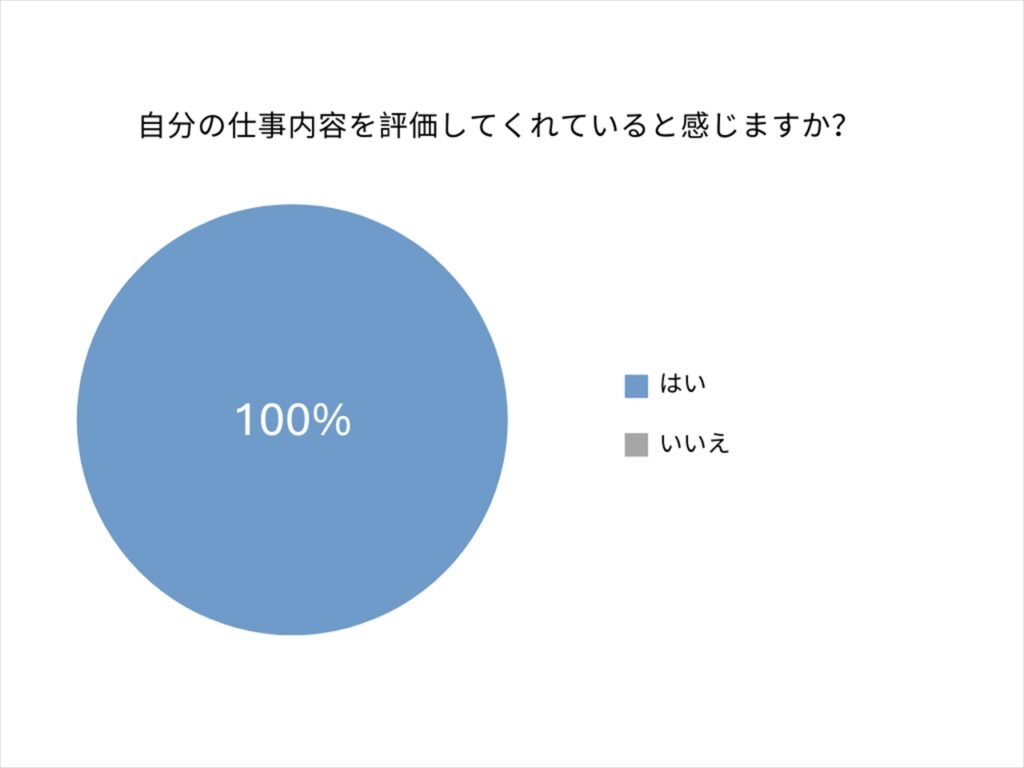 「自分の仕事内容を評価してもらえていると感じますか?」という質問にも、全員が「はい」と回答。