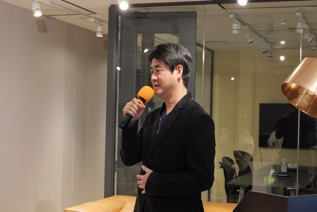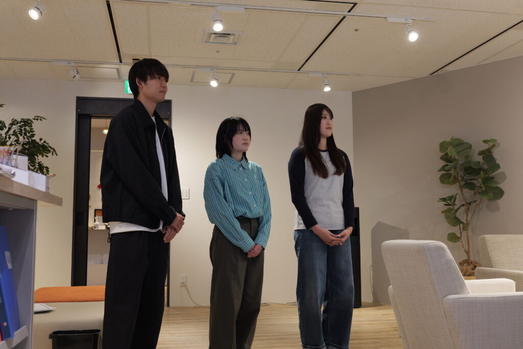 式の終盤には、新入社員3名を一番近くでサポートする「メンター」が紹介されました。代表して挨拶に立ったメンターの竹ケ原さんは、「インターン時代の頑張りを見ていたからこそ、今日こうして正式に仲間になれたことが本当に嬉しい。1年後、皆さんがどんな風に『化けて』いるか、今からワクワクしています!」という温かい言葉に、新入社員たちは安心の笑顔を見せつつも、プロとしての自覚を新たにした表情を浮かべていました。